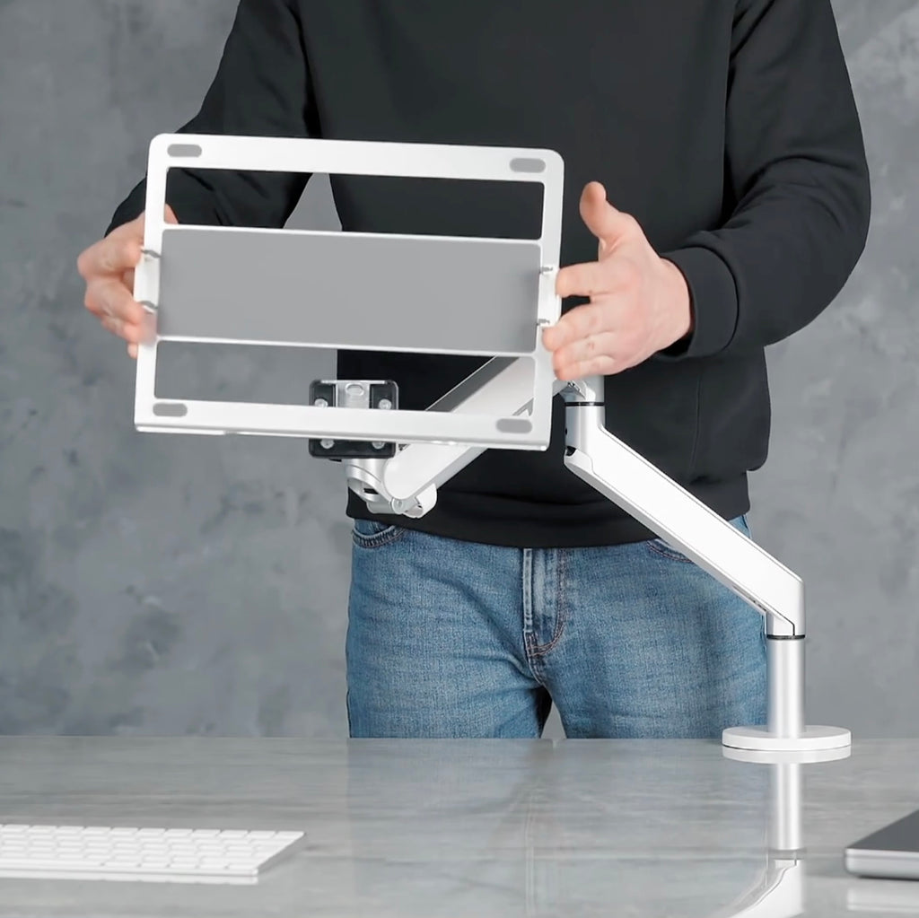 Give your workspace a clean and modern look with the sleek silver finish that complements any setup. The premium aluminum build provides strong support for larger laptops, while the integrated cable management keeps everything tidy. The desk clamp mounting keeps the arm rock solid during daily use.
