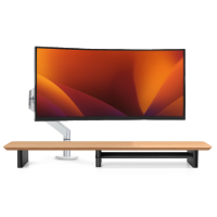Solid walnut wood riser paired with a heavy-duty gas spring monitor arm for lasting performance.